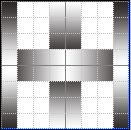 - Commencez par créer un nouveau document de 128 par 128 pixels avec un fond blanc. Entrez dans les préférences de photoshop (Ctrl + K) puis dans les préférence de la grille. Fixez le pas à 64 et les subdivisions au nombre de 4. - Sélectionnez les deux côtés (droit et gauche) de largeur de un carré. Ensuite, avec l'outil dégradé remplissez la sélection comme sur l'illustration suivante : |
